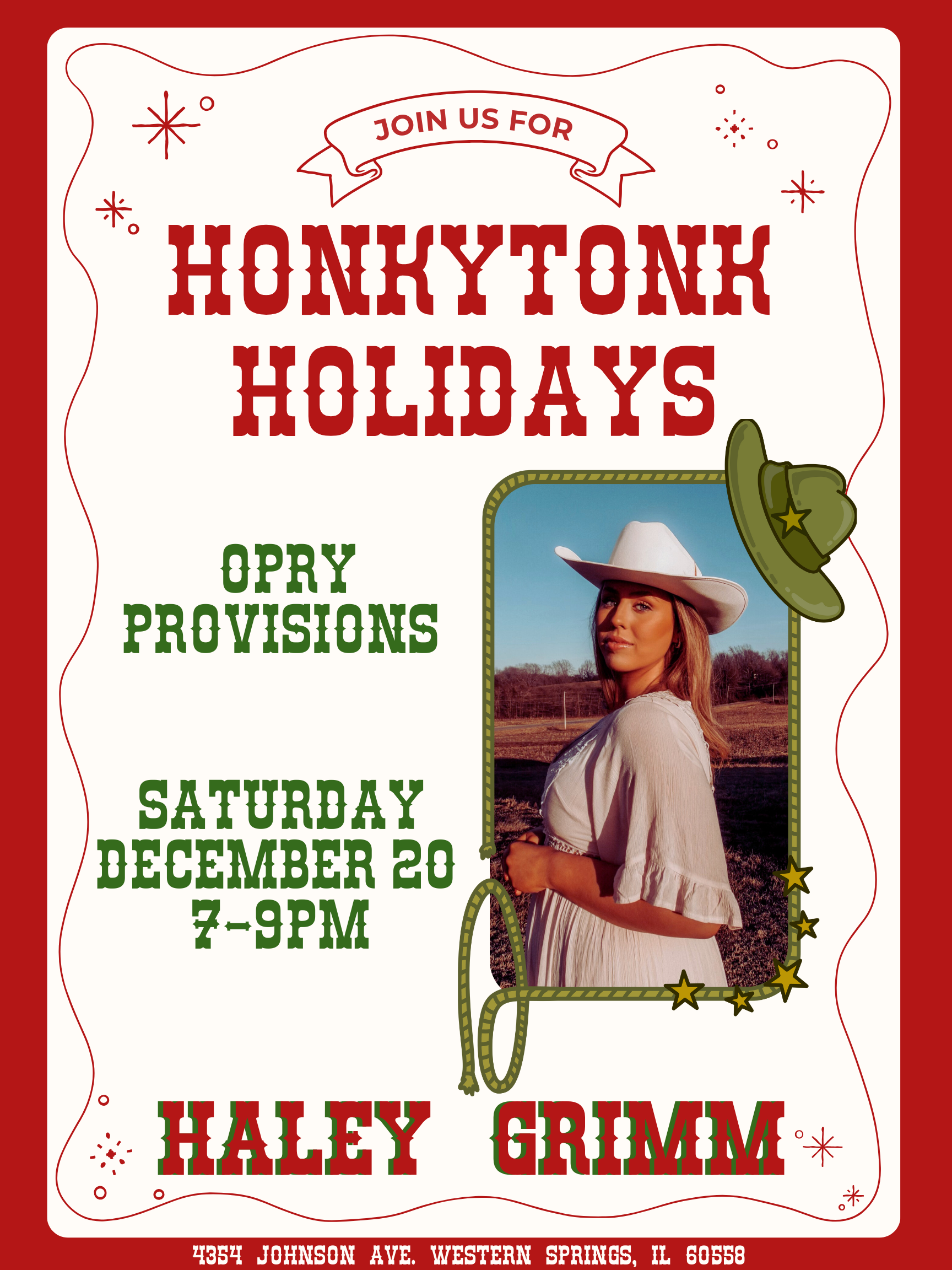 We’re proud to welcome back Westmont native via Nashville, @haleygrimm, for a special Holiday Honkytonk show this Saturday! Open to the public with no cover & plenty of drink specials!